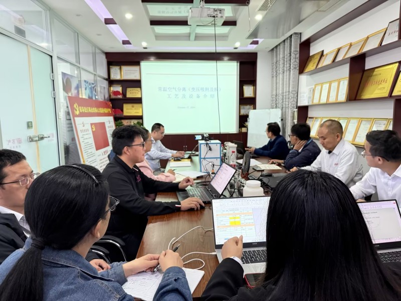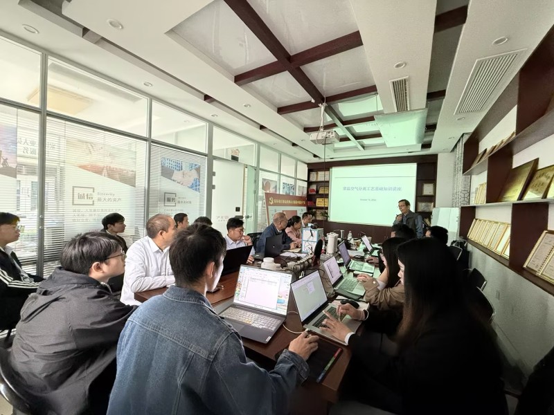培訓(xùn)中,沈老師簡要介紹了本次培訓(xùn)的目的,并結(jié)合氣體設(shè)備市場,重點(diǎn)介紹了常溫空氣分離工藝基礎(chǔ)知識(shí)、常溫空氣分離(變壓吸附及膜)工藝及設(shè)備、碳分子篩及變壓吸附制氮技術(shù)、壓縮空氣膜干燥工藝及設(shè)備等知識(shí),通過深入淺出的現(xiàn)場講解和提問方式,鼓勵(lì)學(xué)員們主動(dòng)思考、積極發(fā)言。