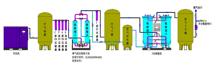變壓吸附制氮裝置工藝流程圖